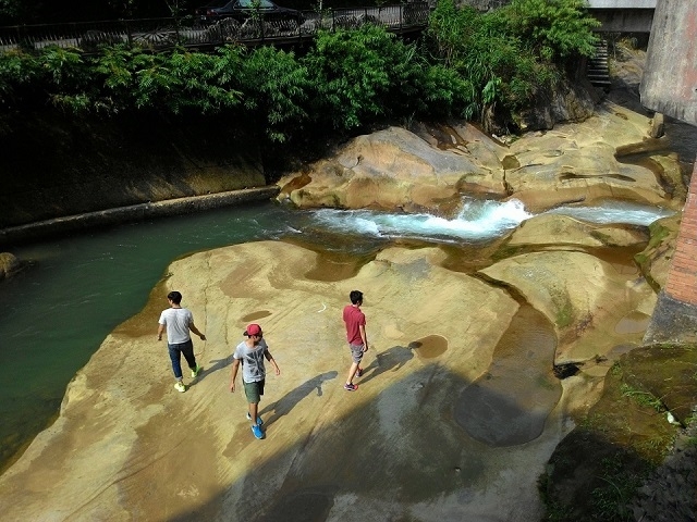 這裡的風景真是不錯!在不見天街下面就是河床和河道,這裡的水很淺,可以提供戲水和餵魚,也很適合坐在這裡吹吹風,拍一張風景照留念