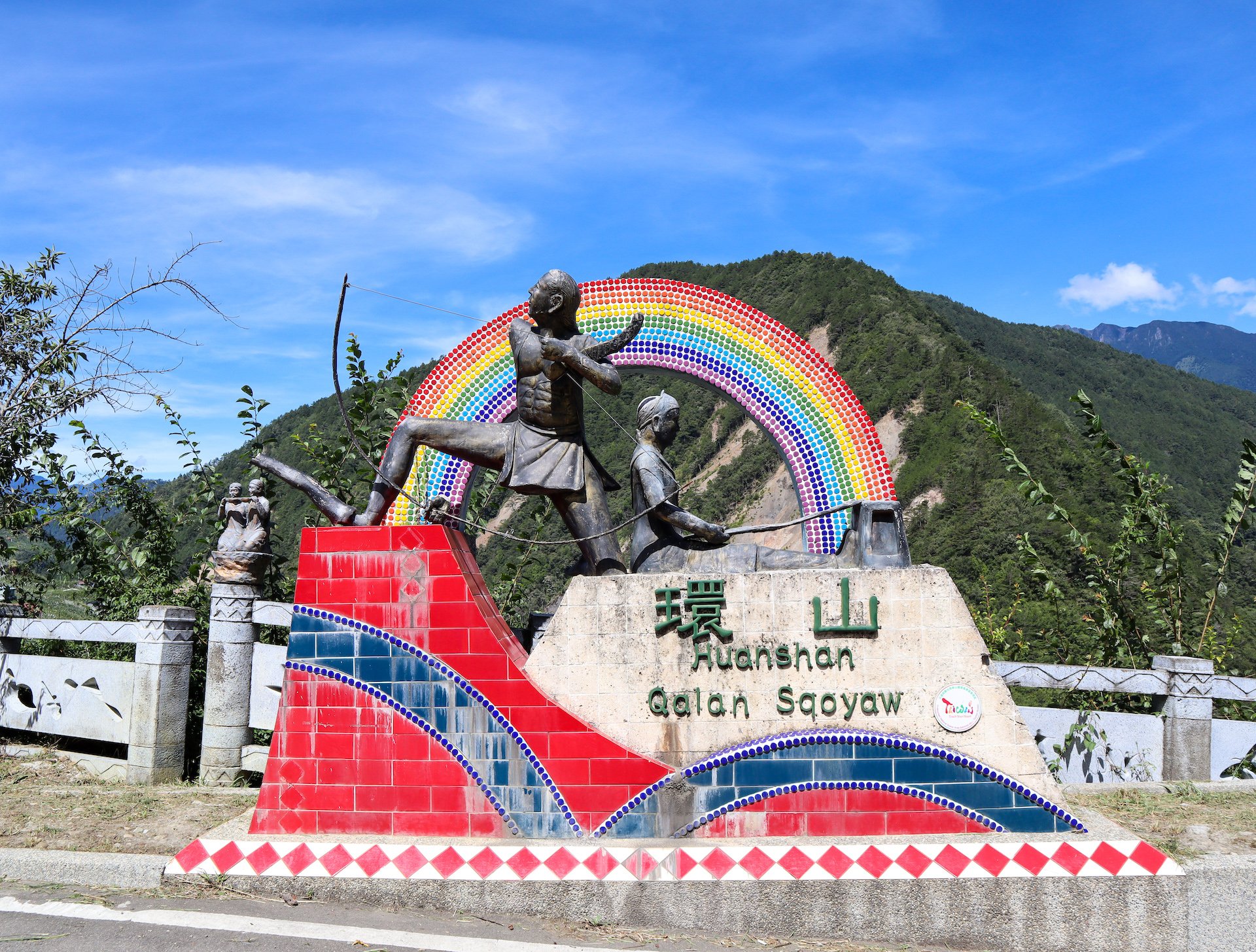 Atayal Square is a square filled with Atayal totems; its buildings and signs are mostly made with wood. The most characteristic is the place where there are wooden signs with wordings, “New Kayo,” “Atayal Square” and “Yulu”, and other signs with Atayal patterns.