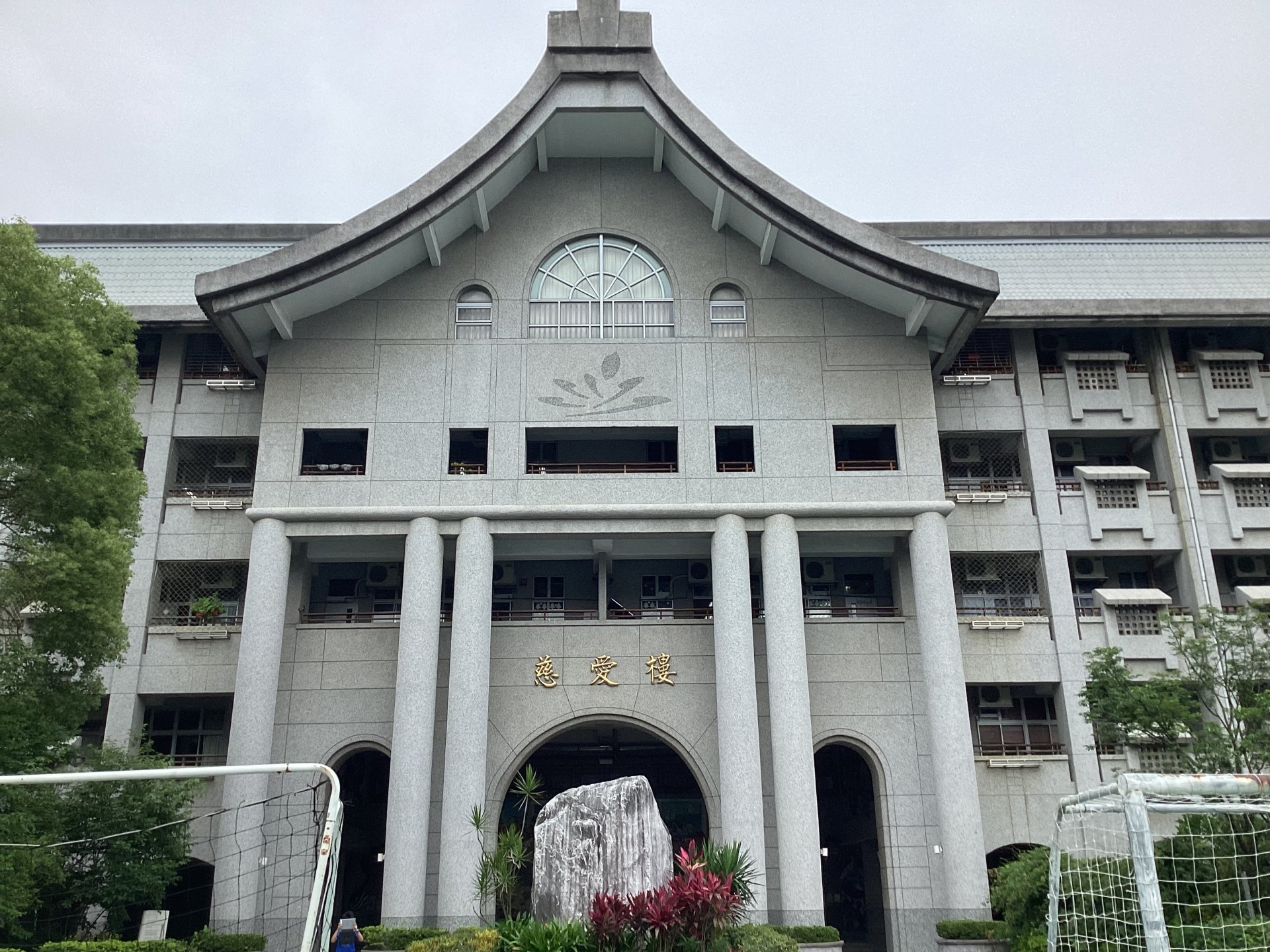 慈愛樓是由慈濟所蓋的,因大地震而改建成慈愛樓,灰色的建築、前面的大石頭成為慈愛樓的特色