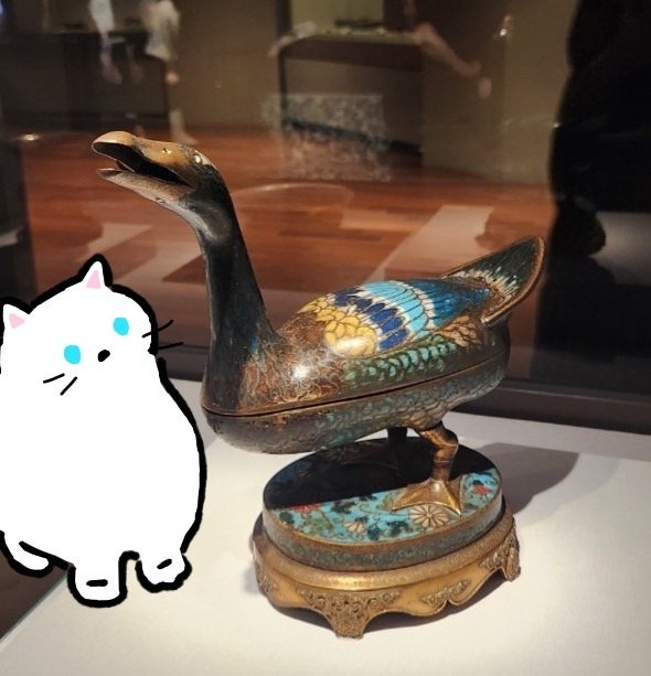 跟隨貓咪的腳步,我來到了106的「集瓊藻-院藏珍玩精華展」展廳,我看見貓咪好奇地靠近爐子,用鼻子聞著它散發出的微妙香氣。牠用爪子輕輕敲打著爐身,發出清脆的聲音,仿佛在與雁鳥交談。