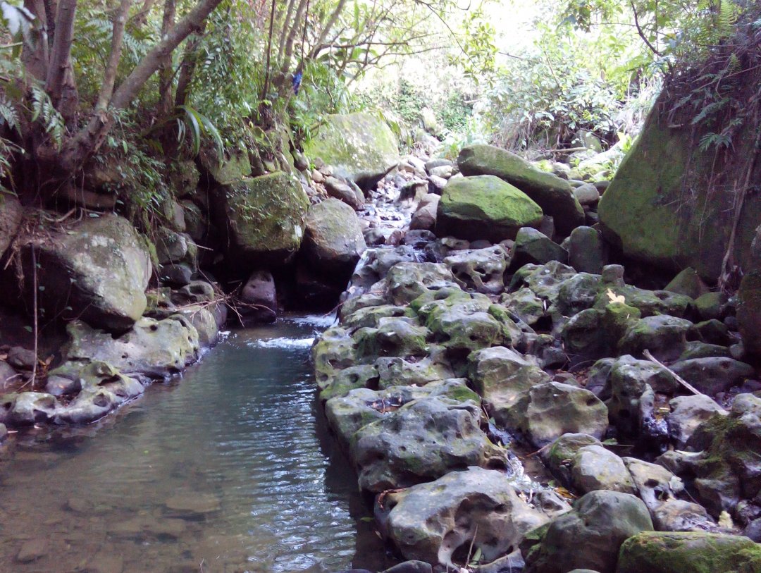 “Pothole river” is a unique geological phenomenon that is usually shaped during a river’s youth. When rain water continues to erode the bedrocks, bringing upstream rocks downstream, the rocks would land in the dents and holes of the riverbed. With long years of weathering, drilling into the dents, the landscape known as potholes is formed. Because the Maokong stream is founded on igneous rocks, along with humid weather and soft earth, created the perfect condition for pothole landscapes to form.
