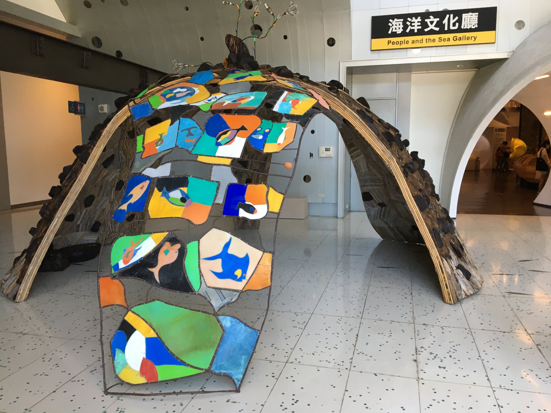 本作品呼應花東海岸常見的海蝕洞,以漂流木、竹為主體結構,將考古挖掘出的陶片和石斧,與廢棄的現成玩具,一同放置在精雕細琢的海蝕洞——「海洋美術館」中,創造出一種充滿諷刺的對比。拉黑子將塑膠片拼貼成如教堂般,燦爛奪目又充滿神聖性的彩繪玻璃,而一件件鑲嵌在海美館的展示物,更直指著海岸的環境問題。