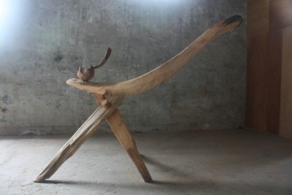 本作品將海祭的形式與祭儀用品抽象化,並運用拉黑子獨有的流暢線條雕刻。作品所使用的漂流木,由拉黑子獨力於海岸扛回。以身體勞動撿拾材料,是他重要的創作方式之一,行走在太平洋的岸邊,不僅可以細微地進行田野紀錄;透過彎腰觸及土地,更能感受到自己與世界的連結,如此日復一日淬煉出藝術家拉黑子特有的太平洋美學感知。