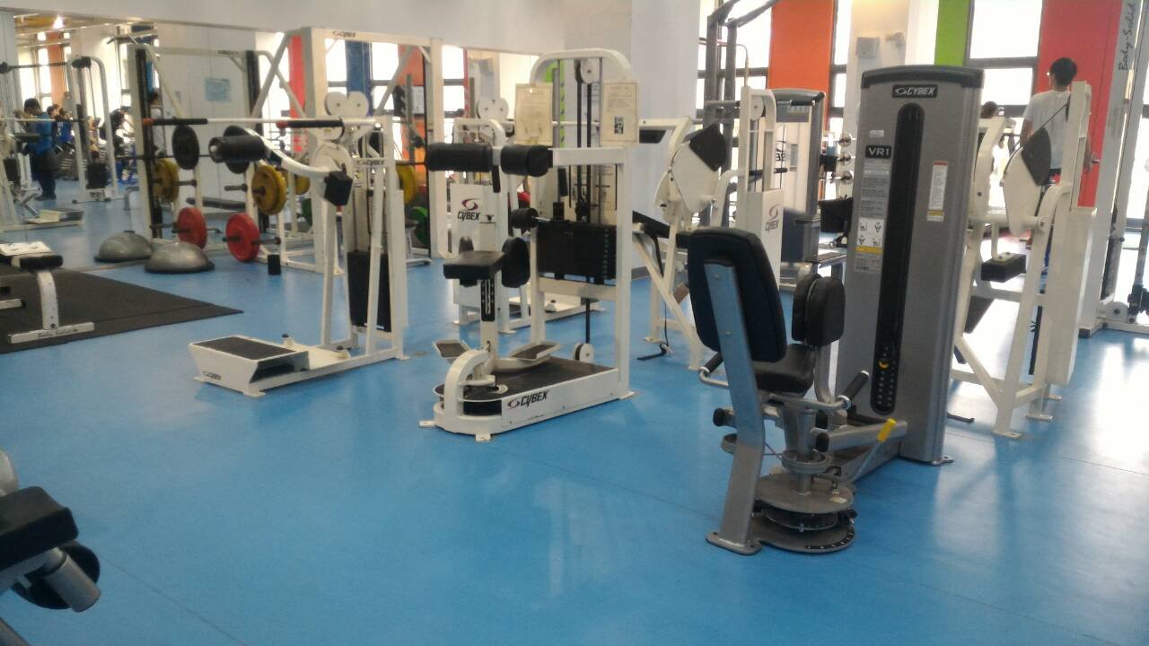 學校健身房器材相當齊全,有可提供心肺訓練的: 跑步機8台 滑輪6台 腳踏車機7台 及各種重量訓練器材。 凡是想訓練身體各部位肌肉的器材,健身房都有。舉凡: 多功能雙臂交叉機 上肢訓練機 胸椎蝴蝶機 臀部內縮外展訓練機等等...