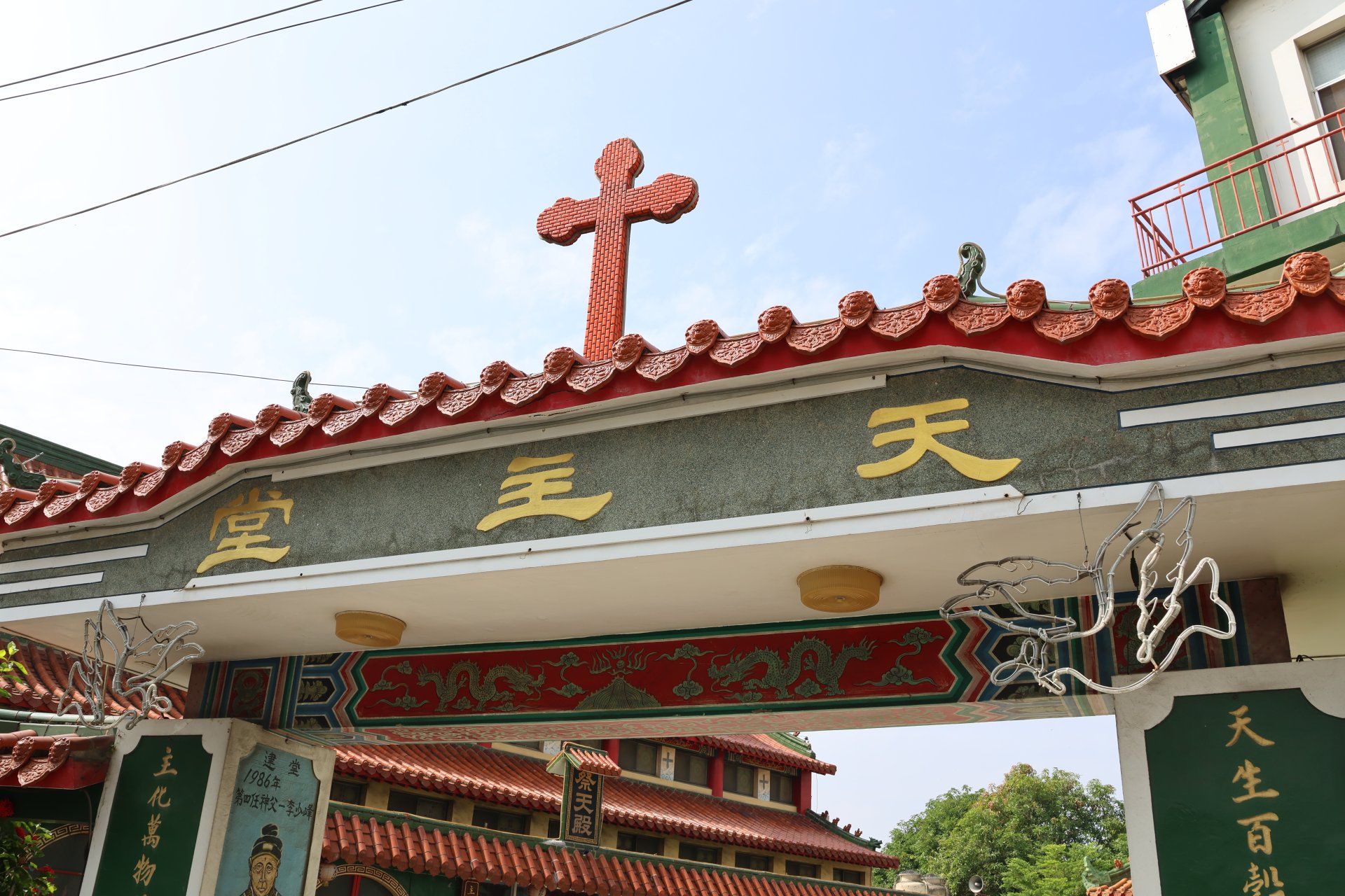 鹽水天主聖神堂位於臺南市鹽水區,是當地一座融合中西建築特色的天主教教堂。該堂最大特色在於採用中國宮廷式建築形式,屋脊飛簷翹角,氣勢典雅;堂內則以中式風格繪製聖經故事及聖人聖像,展現出別具一格的宗教藝術融合。