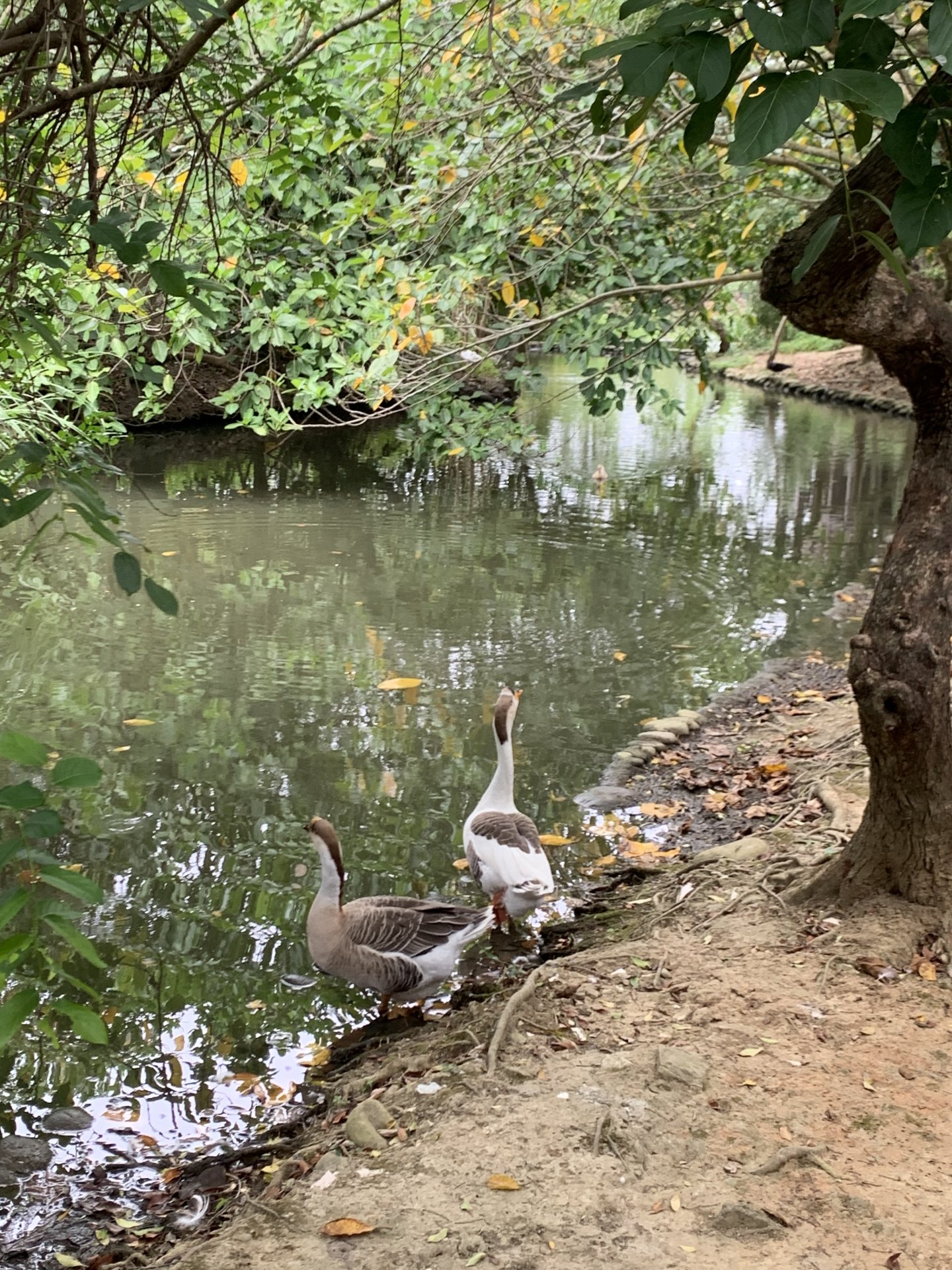 1、埤塘周遭生態(含動植物):鯉魚、鴨、鵝、楊柳