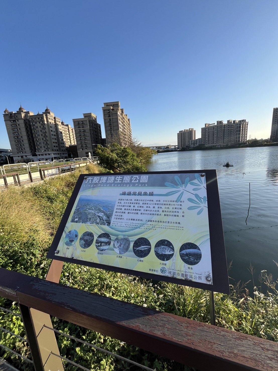 1、埤塘周遭生態(含動植物):大頭鰱、大肚魚、台灣鯛、紅鰭鮊、青魚、台灣欒樹、樟樹、朴樹