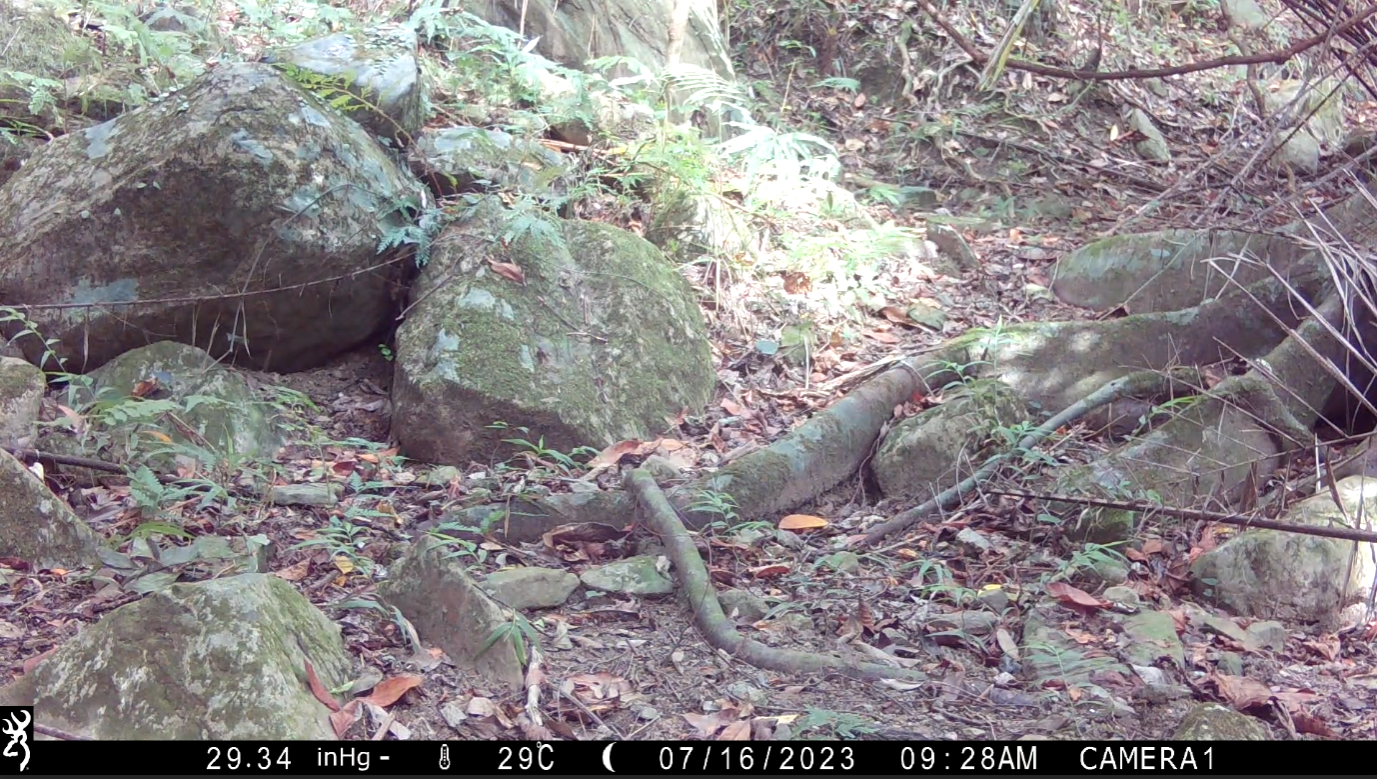 此為A區003紅外線攝像儀,畫面中可以看到有蕨類生長,屬於比較濕潤的環境。