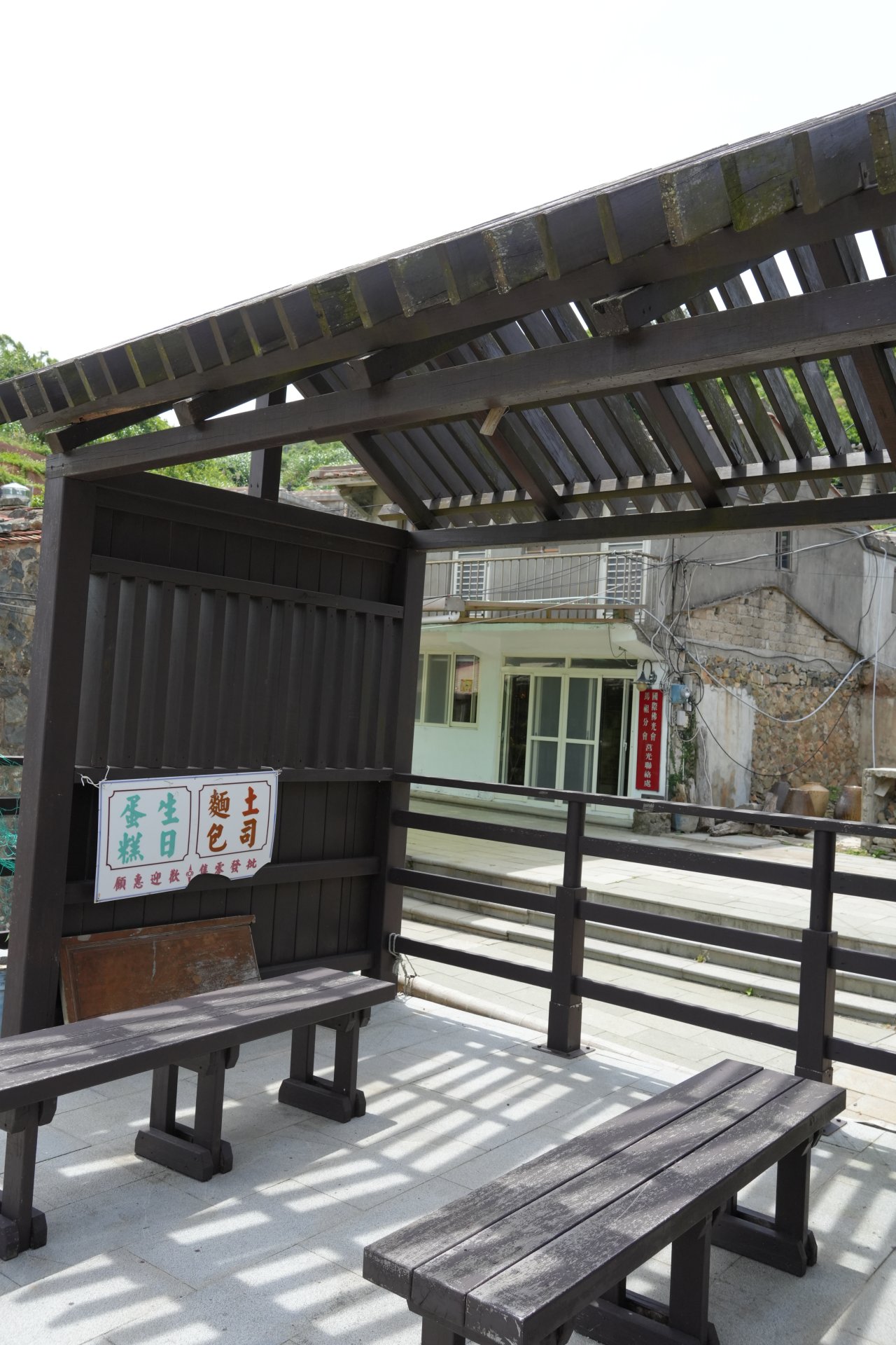 國軍大量進駐西莒後,田澳村裡陸續開了雜貨店、冰菓店、麵包店…,村裡的主要收入來源從漁業轉為商業,迎合當時的流行喜好,西點的需求漸增,這座涼亭的現址,過去是做麵包的工廠,販售吐司、西點蛋糕等,這裡的師傅後來成為田澳村的老村長。
