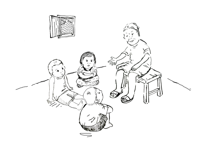 早期聚落最大養羊戶,配種公羊栓於門口,孩子們負責照看空地放養的小羊。
