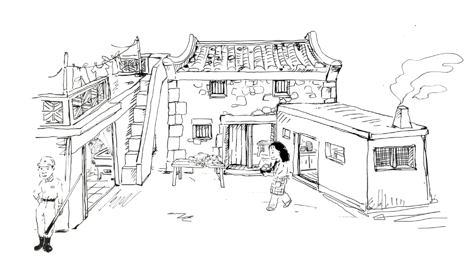 原為住家。過去以地瓜為主食的年代,內部曾儲滿地瓜籤。國軍部隊進駐聚落後,便於前方增建起水泥房(已拆除,牆面可見痕跡),經營起軍人生意:擺設撞球檯、供應水餃、泡麵等餐點、協助清洗軍服及被單。