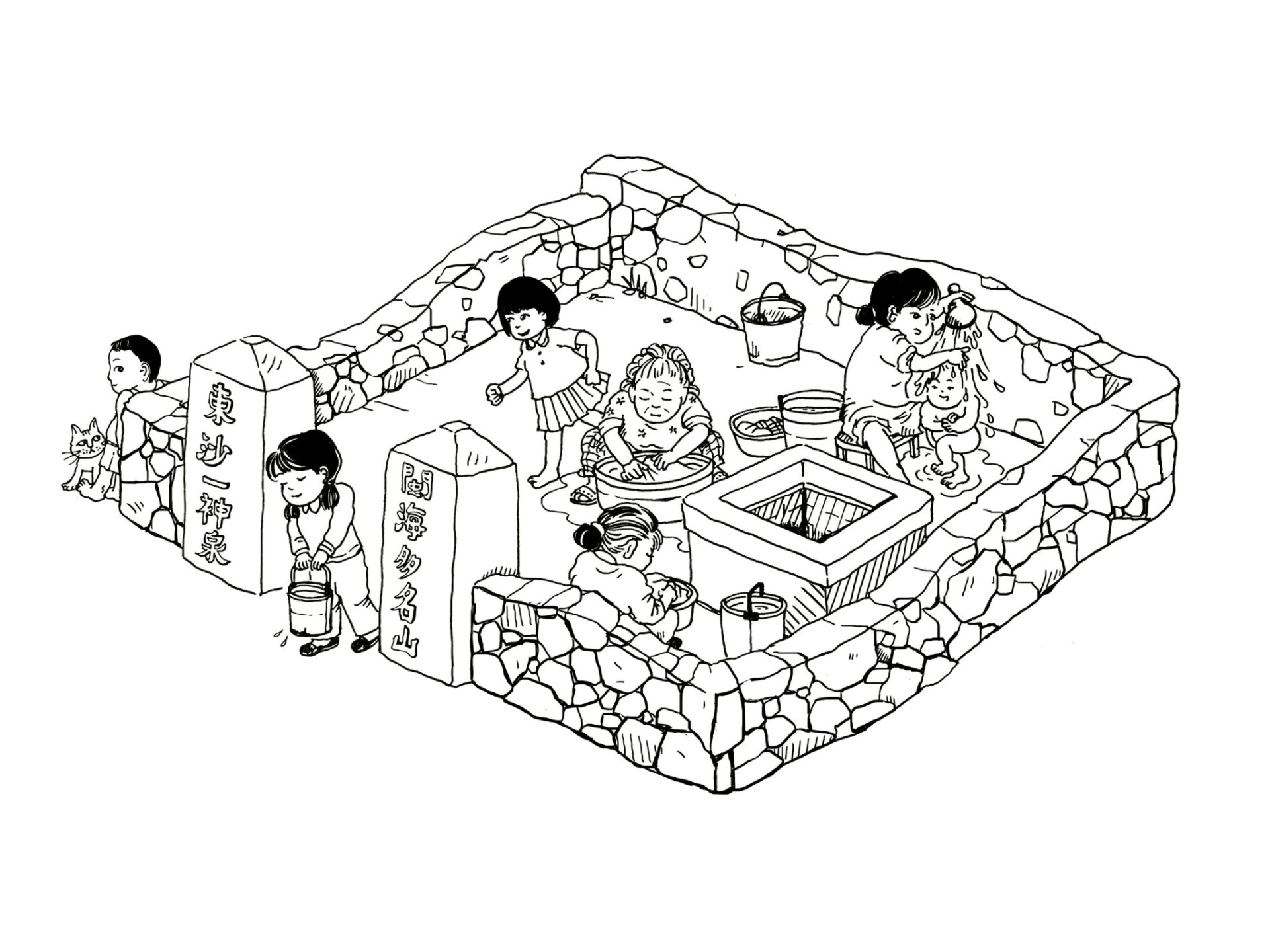 聚落早期天然井,後在東海部隊協助下改造為現代化水井,同時立下題字「閩海多名山、東沙一神泉」之石柱。自來水普及之前,此水井供給聚落民生用水,春夏井水豐沛時,孩子與男人在此盥洗,婦女於此處洗衣,冬季水源不足時,各家戶則輪流分段取水。鮮少居民將此井水做為飲用水,推斷是擔憂鄰近有養豬戶,排泄物可能污染水質。