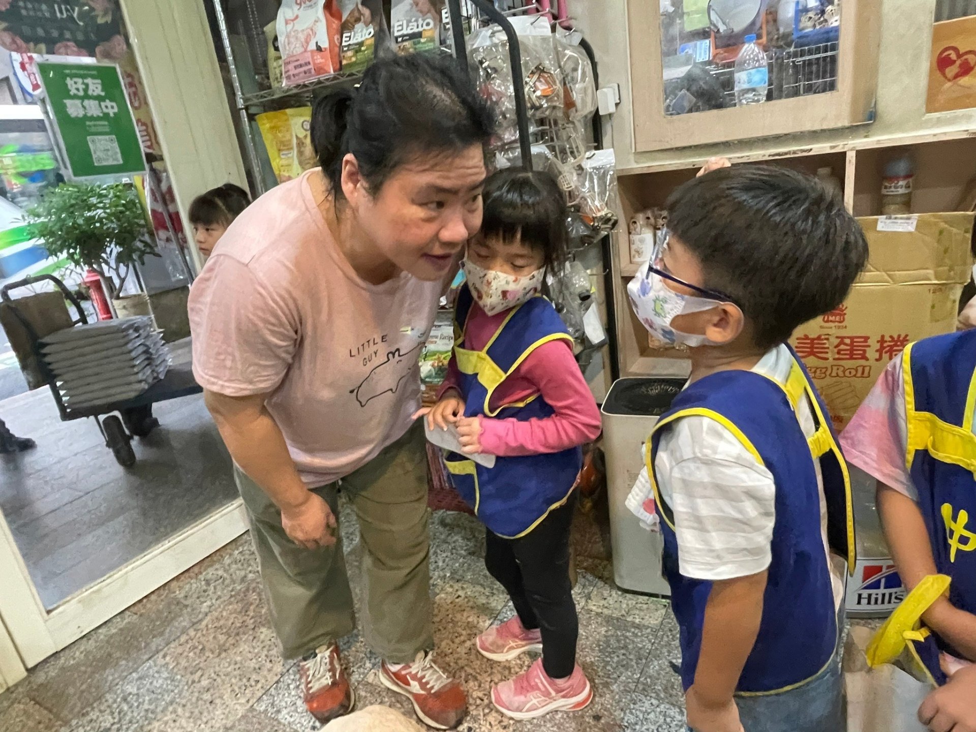 福氣寵物店外有藍白色的小鳥,裡面有很多的貓咪和狗,有逗貓棒可以逗貓,還有賣他們的飼料。這裡可以幫牠們修剪毛,還可以洗澡,就會變得漂漂亮亮的。