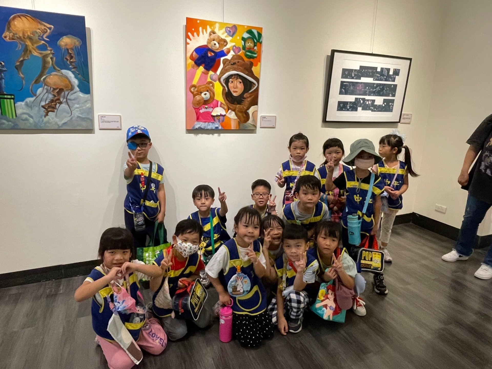 那裡的一樓有展覽,要保持安靜,現在的是畫展,之前有擺像真的便當盒食物的展覽。二樓的話有布袋戲展,裡面有很多戲偶,我們之前去校外教學的時候有玩到。