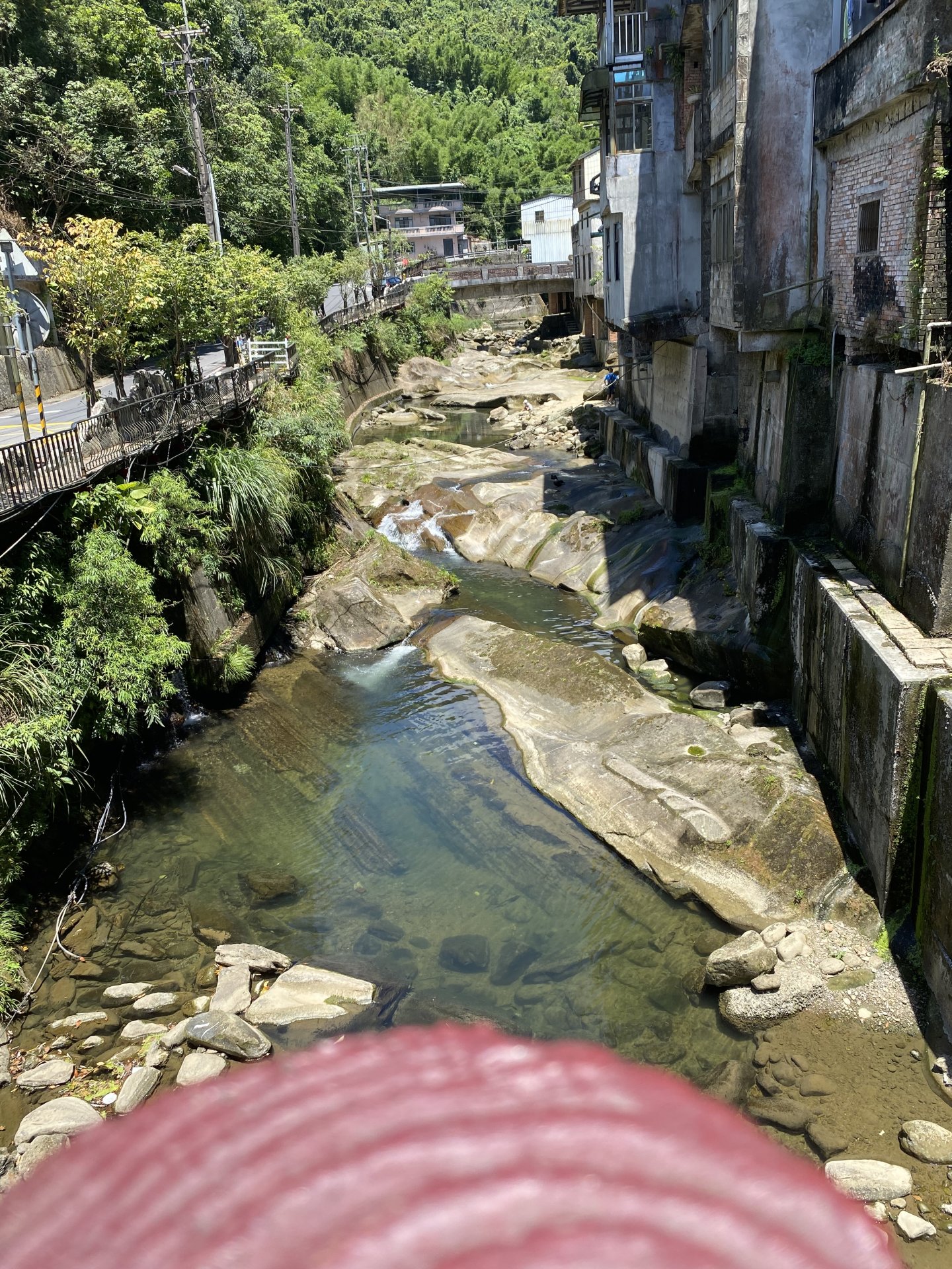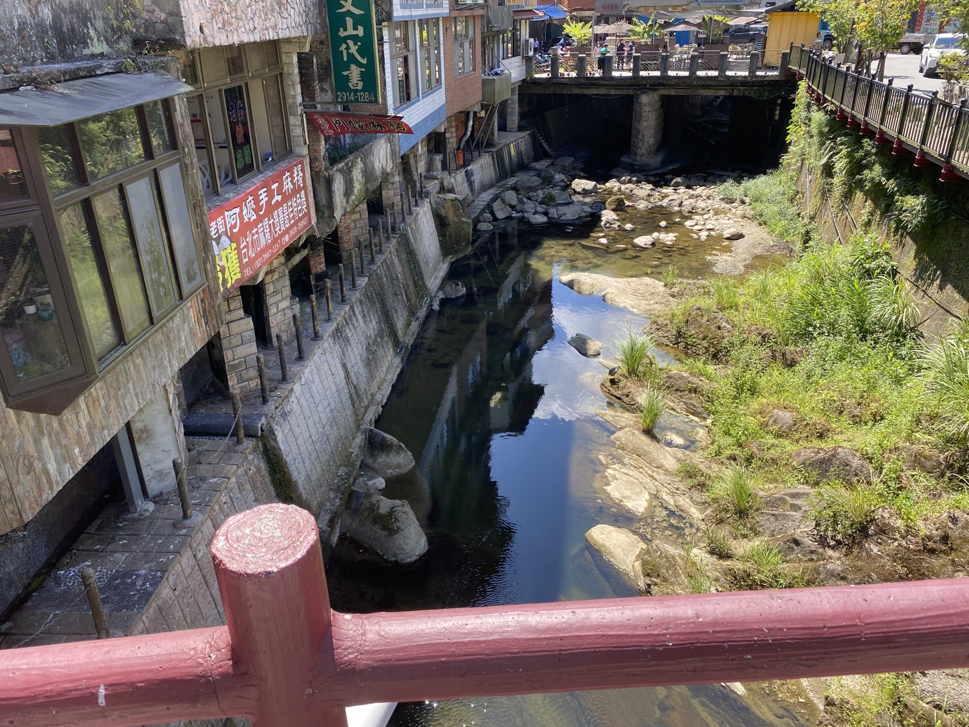 吊腳樓原本下面的石柱是用木頭做的,而現在用的是水泥和磚頭蓋的,所以原本只能蓋一兩樓的房屋就可以往上蓋幾層,而且也可以增加東街的商家數量,讓老街的生意更好,也造成了石碇獨一無二的景觀。