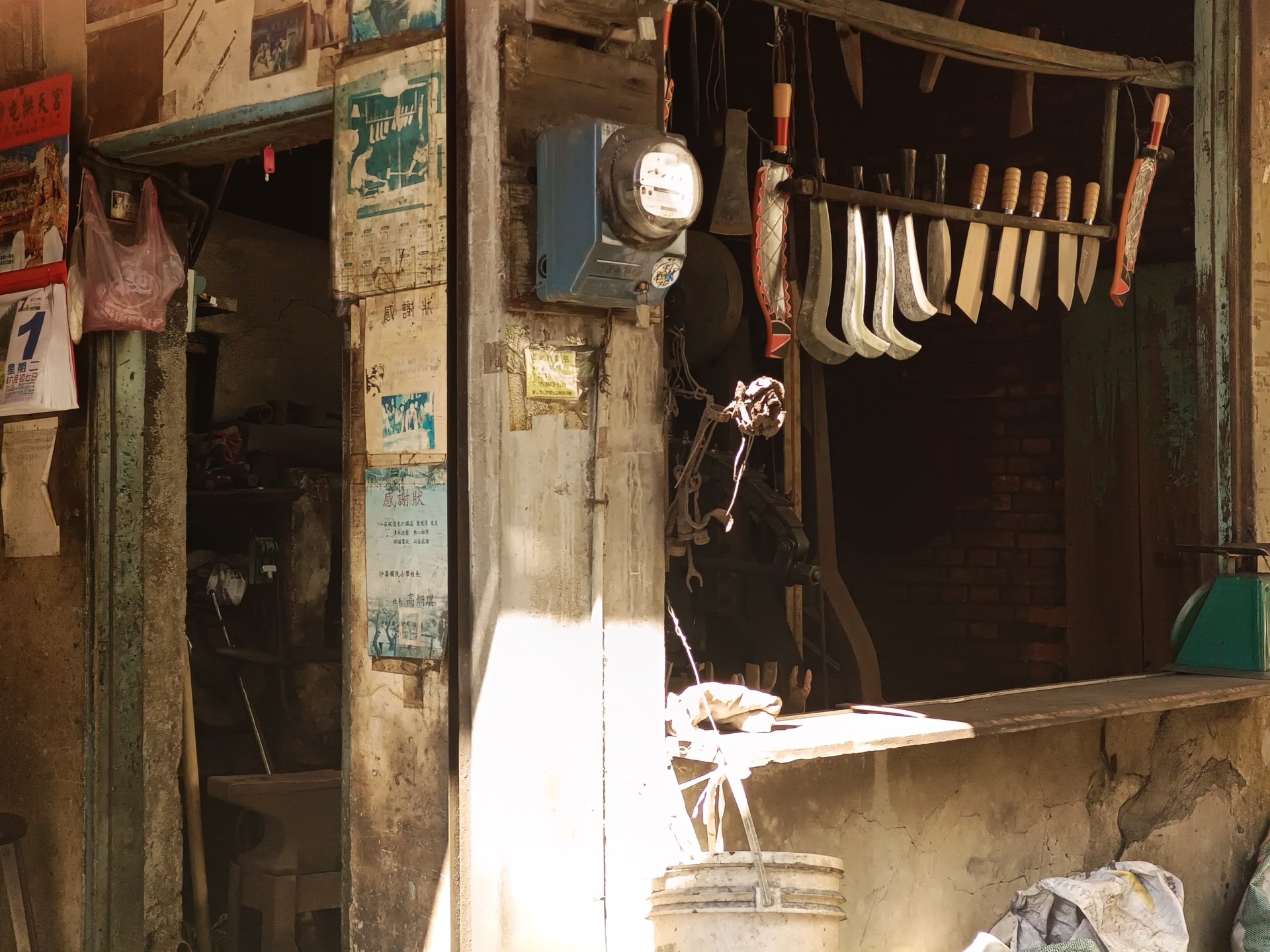 在如今已經少有這種傳統打鐵店,看著打鐵工人拿著槌子一下一下的敲著刀,火花四濺,讓我想到了在炎熱的房子工作的辛苦與感覺穿越到以前的街上。時光匆匆的過,但卻感覺這一間店永遠不會消失,不久後屋裡還是會出現像象徵的火花,永遠在那裡。
