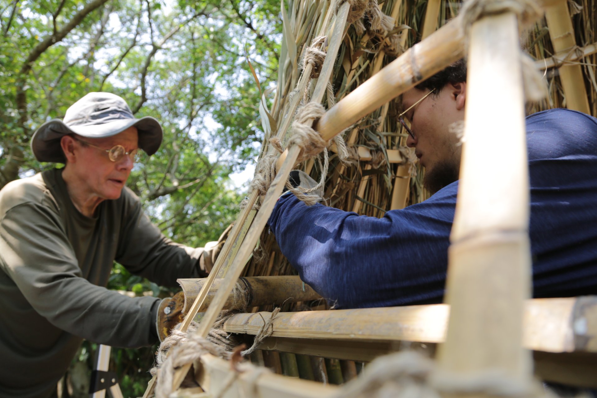 關渡三體將是一個由三個結構組成的系列,由竹子和當地蘆葦製成的茅草屋頂構成。