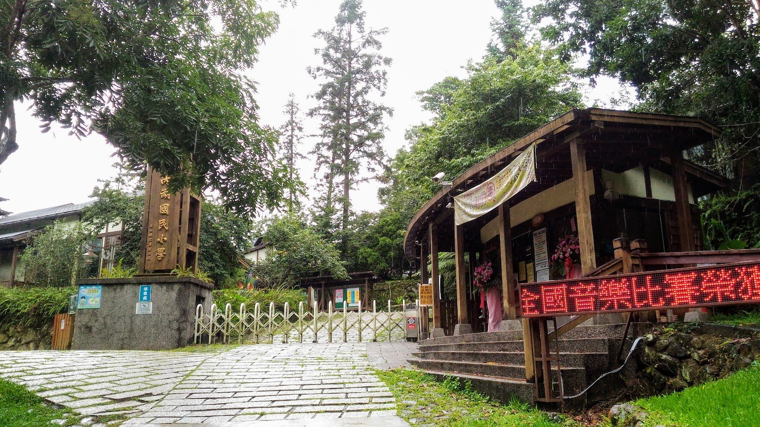 The campus architecture of Neihu Elementary School is its biggest highlight, blending Japanese and local Taiwanese styles to present a strong sense of nostalgia and nature. All the school buildings are constructed in the style of traditional Japanese wooden architecture, built along the contours of the mountain, preserving the original cedar forest. The exterior of the buildings resembles a landscape painting of a Japanese village. The wooden cottages are scattered in a pleasing manner, exuding a tranquil Japanese ambiance, as if one were in a Japanese mountain village.