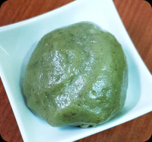 Second step grind into rice and press dry. After that cook raw rice cake , then knead everything into a ball .