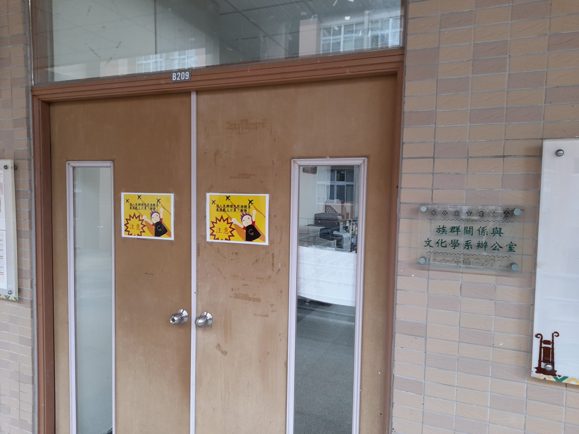 族文系辦公室(簡稱「系辦」),裡頭目前為兩位行政助理在處理系上行政業務;SiPang內共有三個空間,左邊為放置雜物作倉庫的空間,中間為兩位助理辦公的空間,亦有小橢圓桌子供其他利用,右邊空間多為系務會議使用,有餐具、洗手台可使用,亦有咖啡機;另外也有幾台很難用的電腦放在那邊沒有人會去用。 系辦會有系上的工讀生在那邊工讀,另外學生有任何學業問題也會到SiPang找助理「淑美姊」。