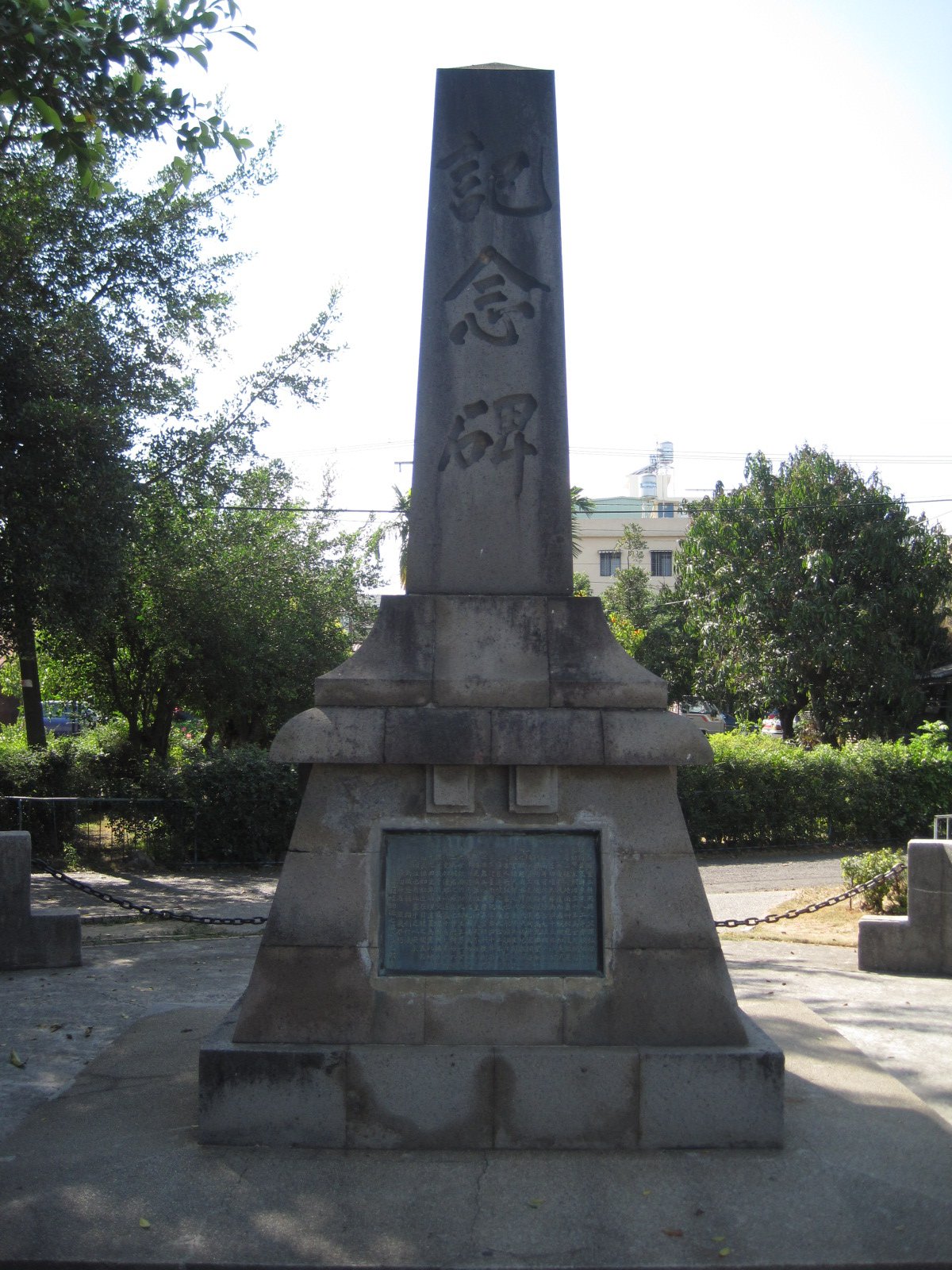 飯田豐二生於1874年、死於1913年,日本靜岡縣人,鐵道工程師,受命主持屏東線鐵路工程,其中包括了下淡水溪鐵橋的興建,但他在鐵橋完工前便因病去世。日後打狗保線事務所所長小山三郎為其立碑紀念,紀念碑即位在九曲堂車站附近。飯田豐二為日本靜岡縣人,父親名叫飯田弘,母親為吉田氏,二十歲左右到東京工手學校(今工學院大學)研讀土木學。畢業後在明治三十年(1897年)成為臺灣總督府雇員,不久擔任技手一職,後在明治四十三年(1910年)因功陞任技師,並敘高等官六等,授正七位。隔年(1911年)臺灣總督府打算要興建從鳳山廳通往阿緱廳的鐵路,飯田豐二遂被任命為九曲堂派出所主任督工,而該工程中最為艱難的即是興建橫跨下淡水溪(今高屏溪)的鐵橋。在此同時由於九曲堂派出所附近爆發瘧疾,而飯田豐二又因工程積勞成疾,結果在大正二年(1913年)6月10日病逝於臺南病院。下淡水溪鐵橋完工後,打狗保線事務所所長小山三郎為其在九曲堂車站附近立碑紀念,並將完成下淡水溪鐵橋工程的功勞歸給他。