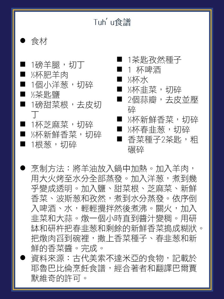 本次導覽將由地理.歷史.飲食.服裝.藝術.文字.商業.婚姻.神話帶您認識古巴比倫人的生活。