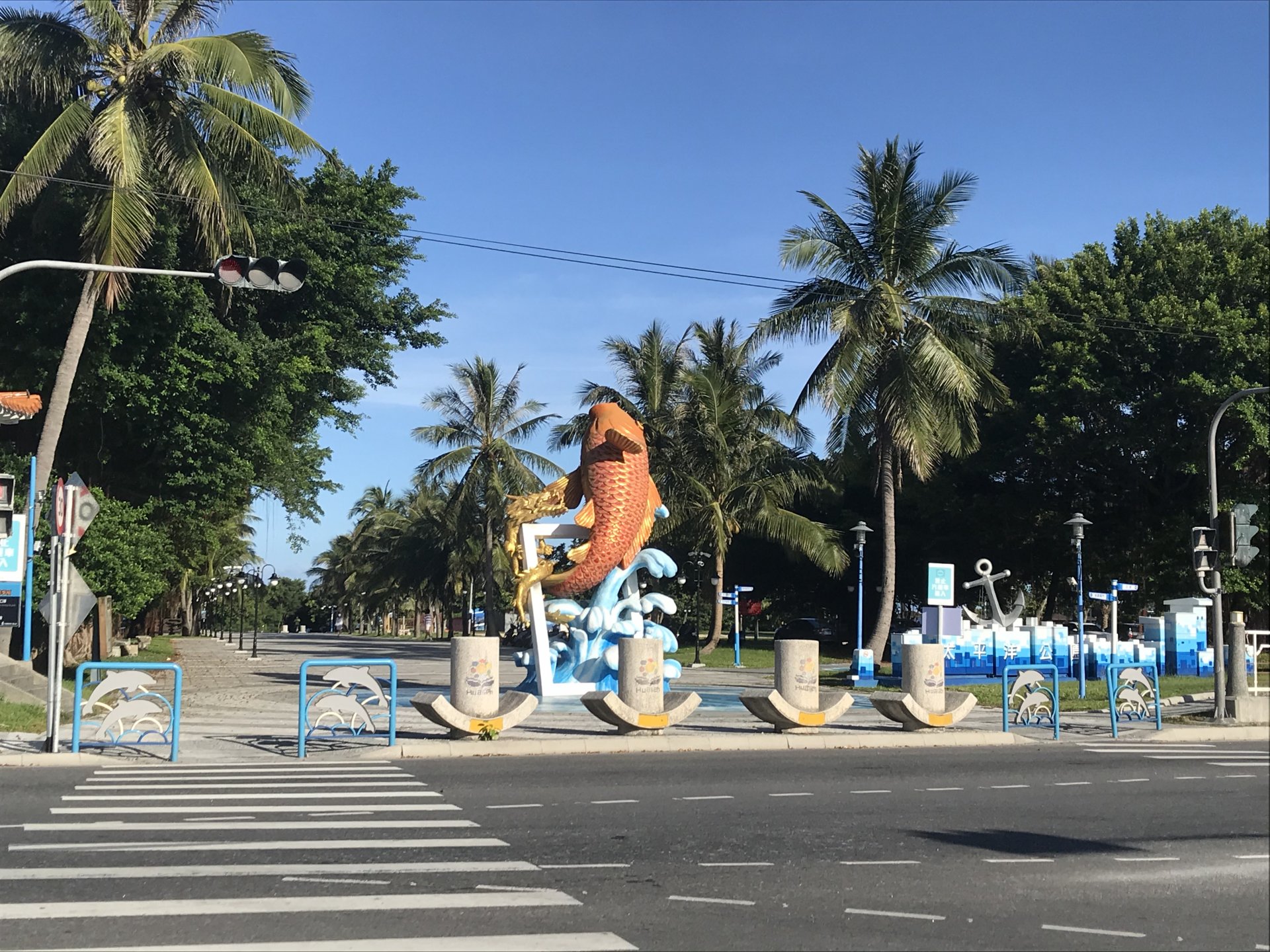壁畫沿著坡道一路綿延五百公尺,幾乎可以稱為全台最長的大理石壁畫,拼貼的圖像有水墨畫風格也有太平洋的浪花與美景,展現出花蓮獨特的自然環境特色。