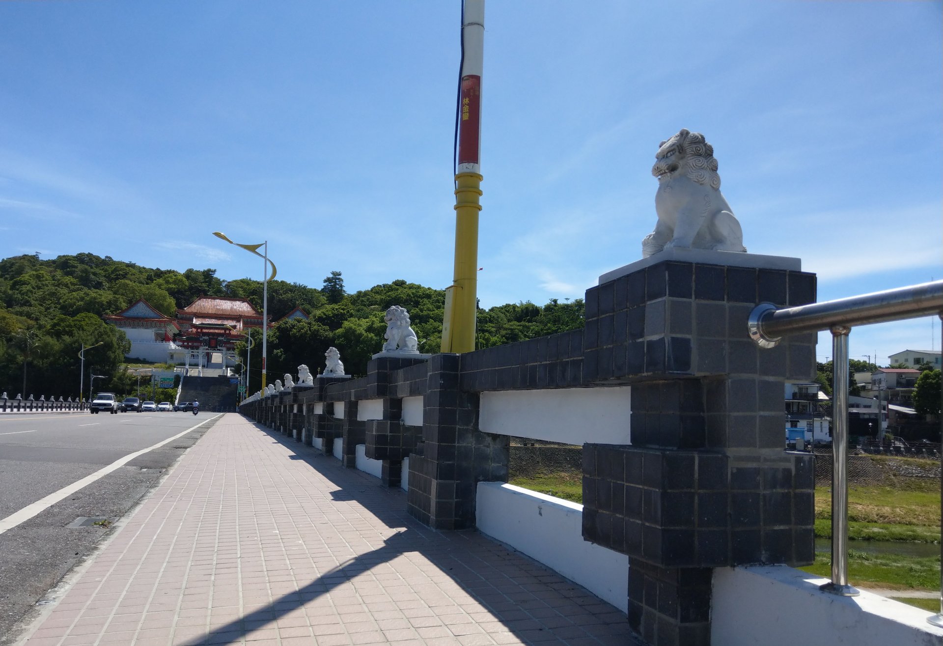 戰後隨神社易名為忠烈祠而改名尚志橋,到了1970年因颱風毀損吊橋,只好拆除並改建成水泥橋,2001年又因應花蓮車流量增加,尚志橋雙線道拓寬成四線橋樑,並在橋梁兩側加上仿造中國盧溝橋石獅子林立的設計,在各個護欄上都裝設了不同姿態、造型,有的踩球,有的背著小獅子,都是用純白色大理石精雕的石獅子,總數達到145隻,是尚志橋的特色。