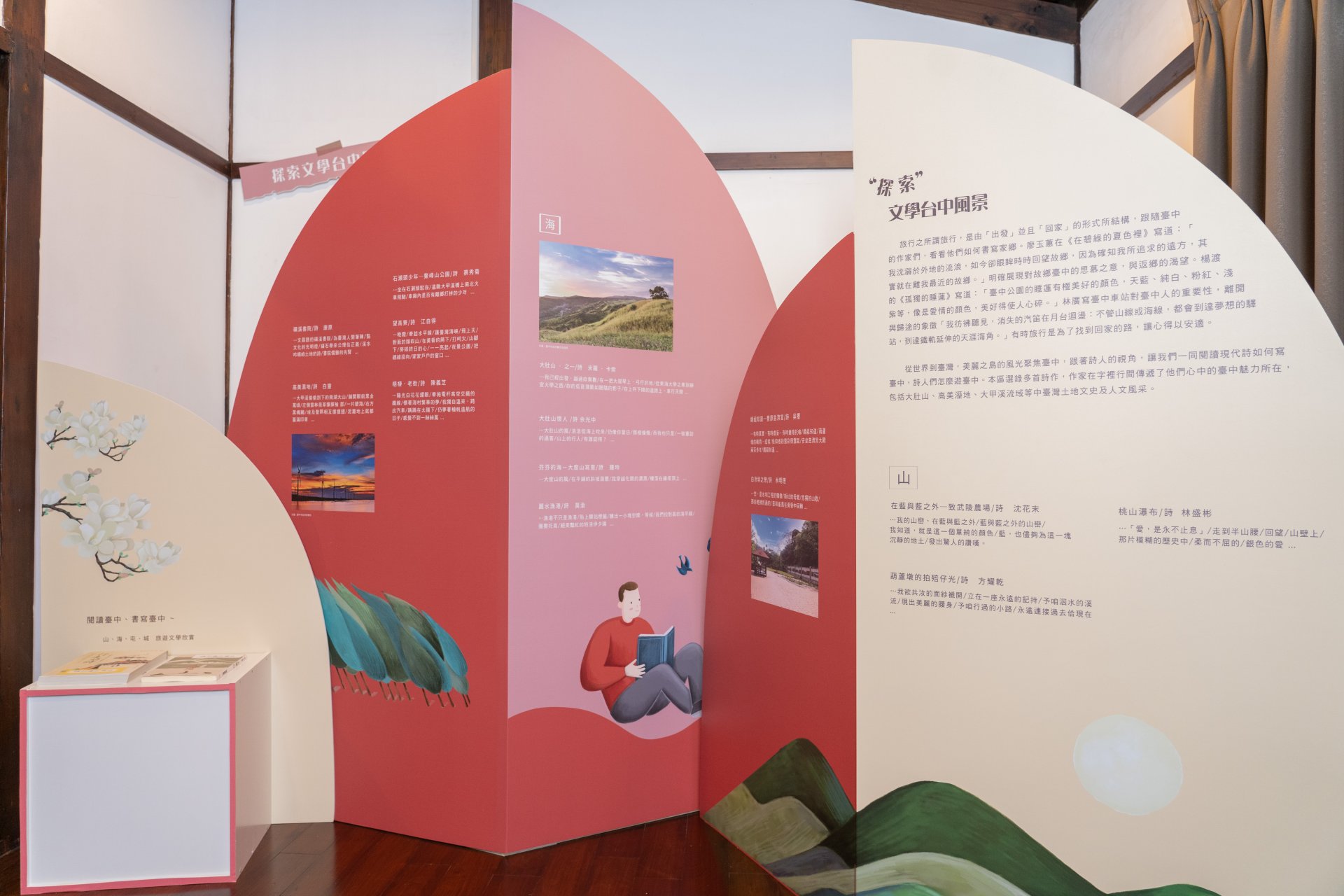 本展區特別設計以旅人文心小測驗展示相關文學作品,包括: