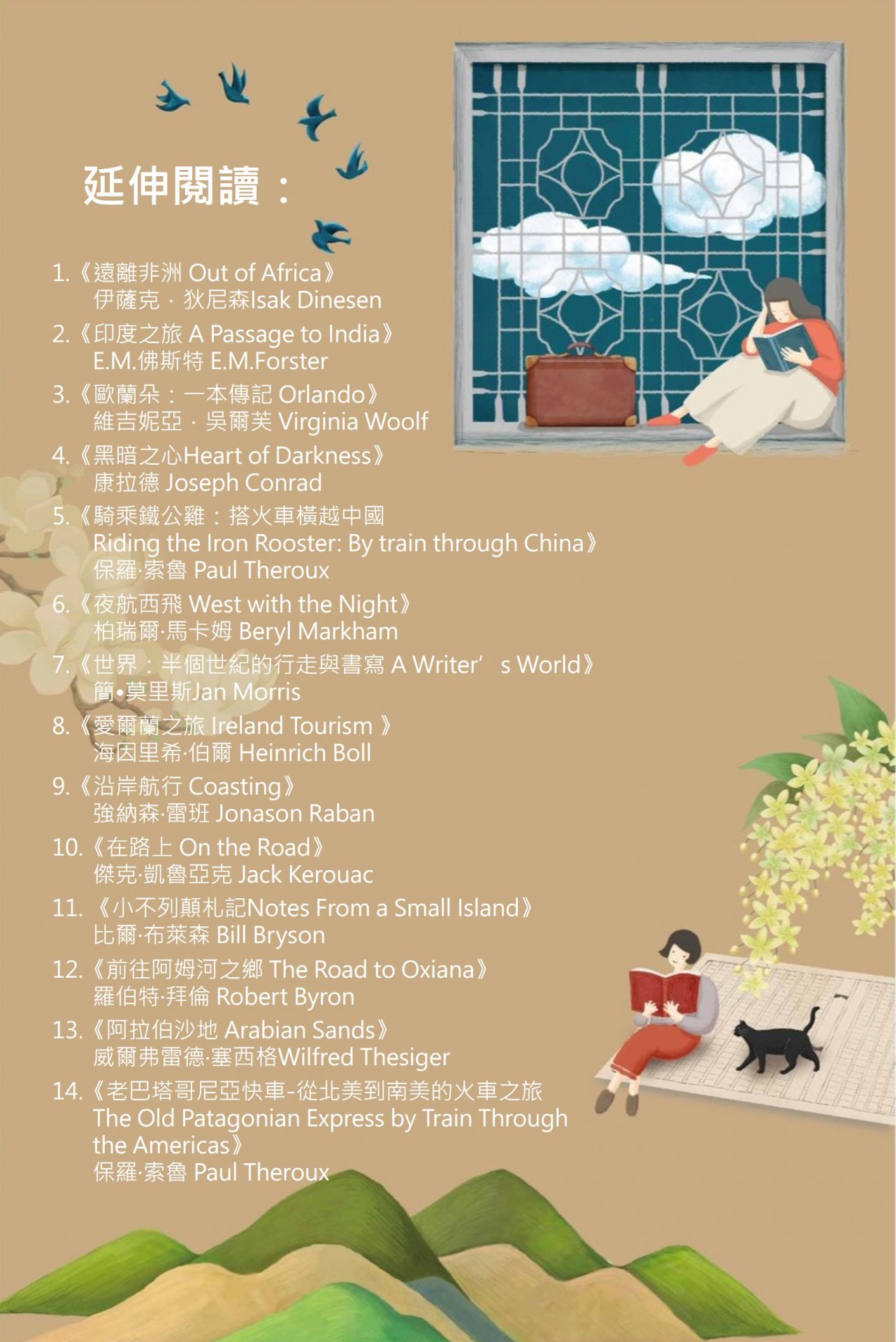 從大航海冒險時代,人們即對於不同的土地與風俗充滿興趣與探究的好奇心, 冒險與旅行不僅承載了我們對未知的想像,也產生許多關於旅途的見聞紀錄,透 過這些文學作品我們彷彿從字裡行間也領略了世界的廣闊。