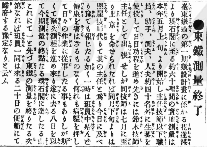 圖一:東鐵測量終了(來源:〈日日新報〉)