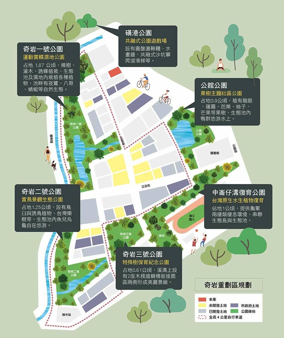 這些公園蠻安靜的,有許多老爺爺老奶奶會在那下棋、聊天,在公園內設置了生態池、景觀步道、誘鳥植栽等。那裡還有提供休憩的涼亭。