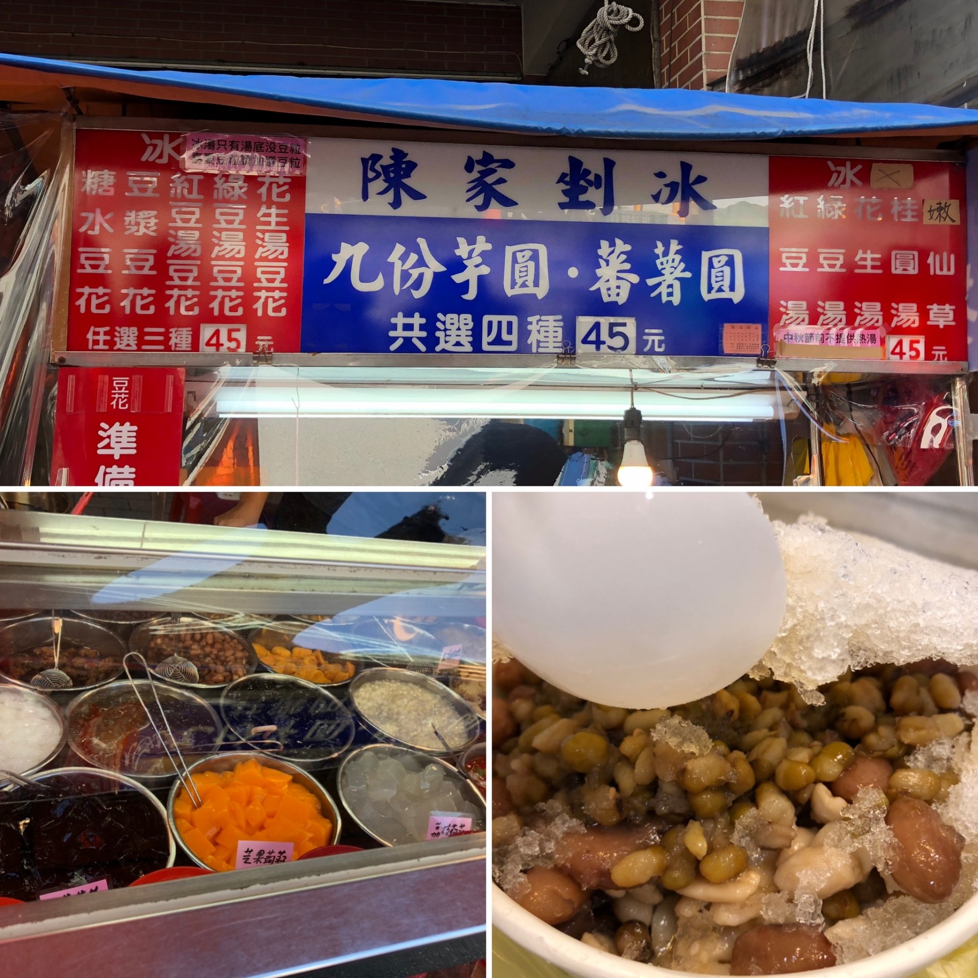 看到店家提供給的料非常的豐富,我分別點了花生、大紅豆、綠豆、椰果,吃下去的第一口,甜度適中,他們家的黑糖是屬於黑糖香氣比較重,八里的黑糖剉冰是偏甜的那種,所以吃的陳家的剉冰會一點不習慣,