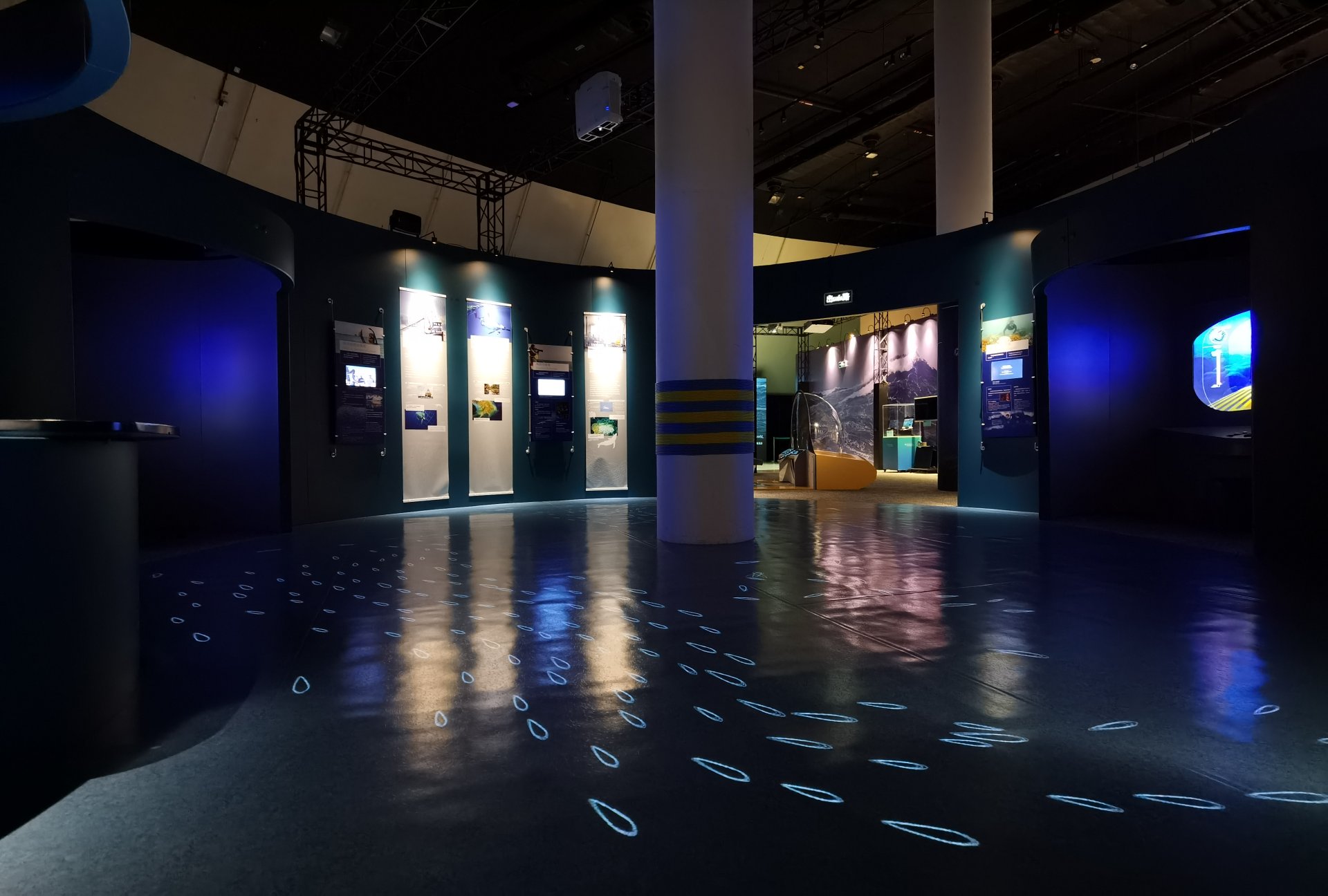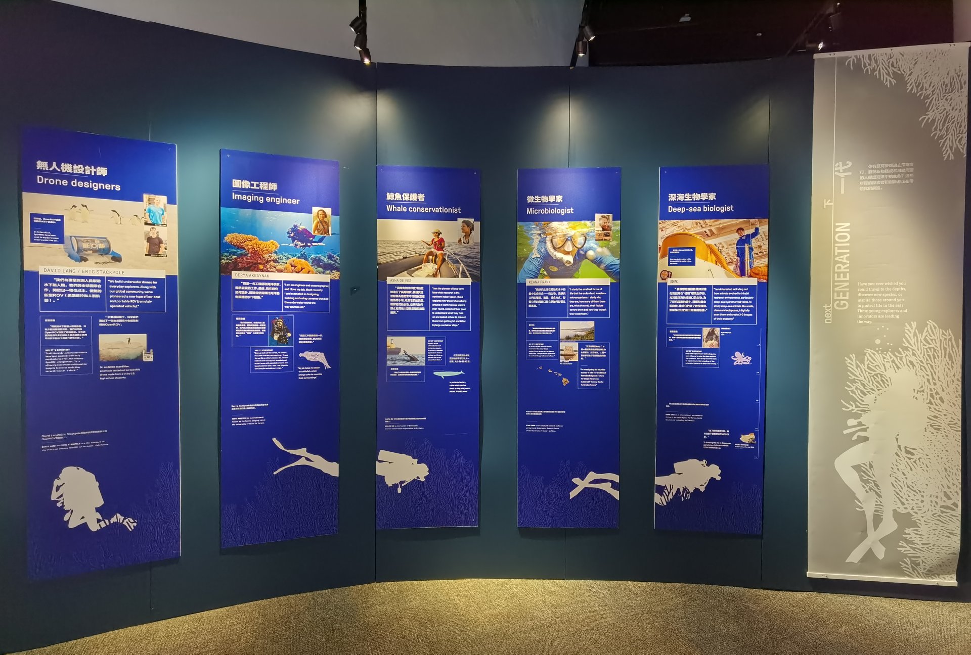 透過AR技術、半透明LED屏幕、多媒體互動影片、水底機械人以及互動沙池展品,去展現澳門漁業、海面不同深度的生物分佈、澳門海域及澳門聖公會學校的比賽得獎作品。