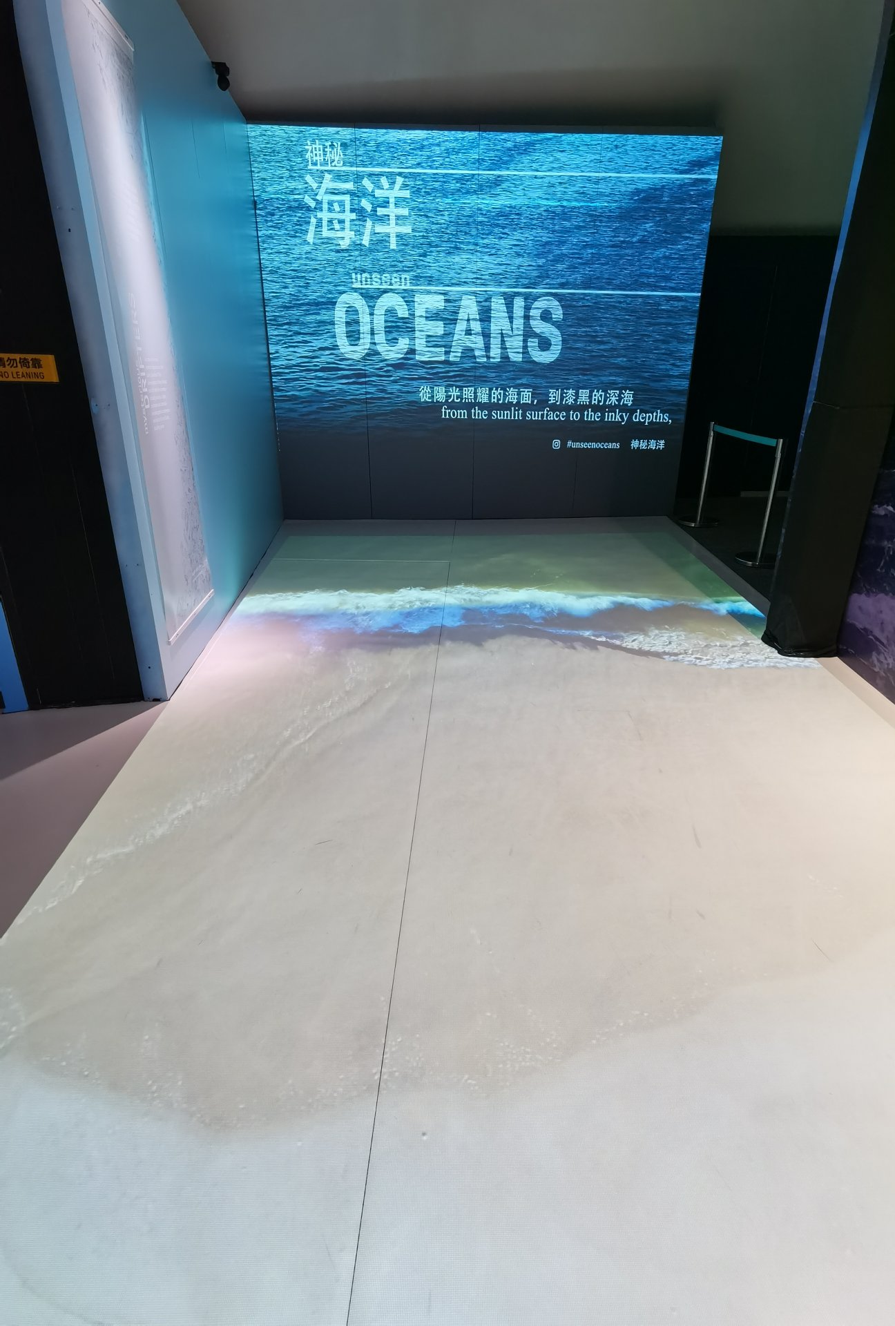 這區地面會出現小魚群投影,會按照參觀者的動作產生互動效果。