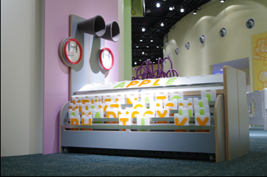 把26個英文字母組合成英文單詞後放置在斜枱上,按下按鍵,學習單詞的發音。