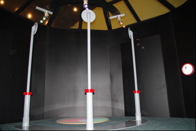 轉動柱子,將紅、藍、綠三種顏色的光束自由組合,學習光的三原色紅藍綠和彩色的合成。