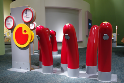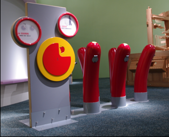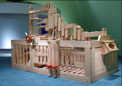 利用展品的各種操作部件,利用拉桿、踏鍵和轉輪,將球從較低處運往較高處。透過這展品能夠訓練身體的協調能力,同時也可學習團隊合作的精神。