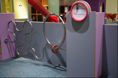 將圓環沿著管道從其中一方移動到另一方,讓小朋友訓練手部和身體的協調能力,也可藉此提高專注力。