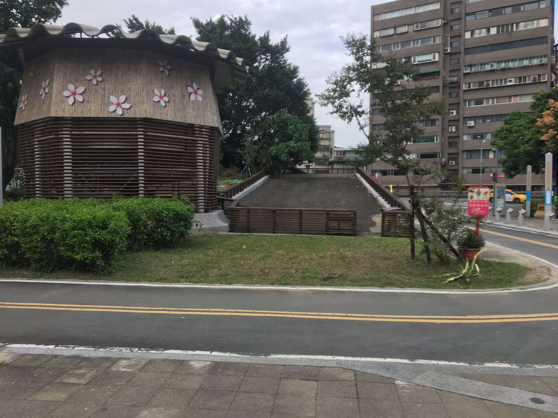 民國108年因公園推動空間改造案,盆植區的容器便搬至地下停車場出入口上方的斜坡屋頂上,營造成少見的「斜屋頂式」菜園,也讓原本單調的屋頂,有了生機盎然的綠化效果。