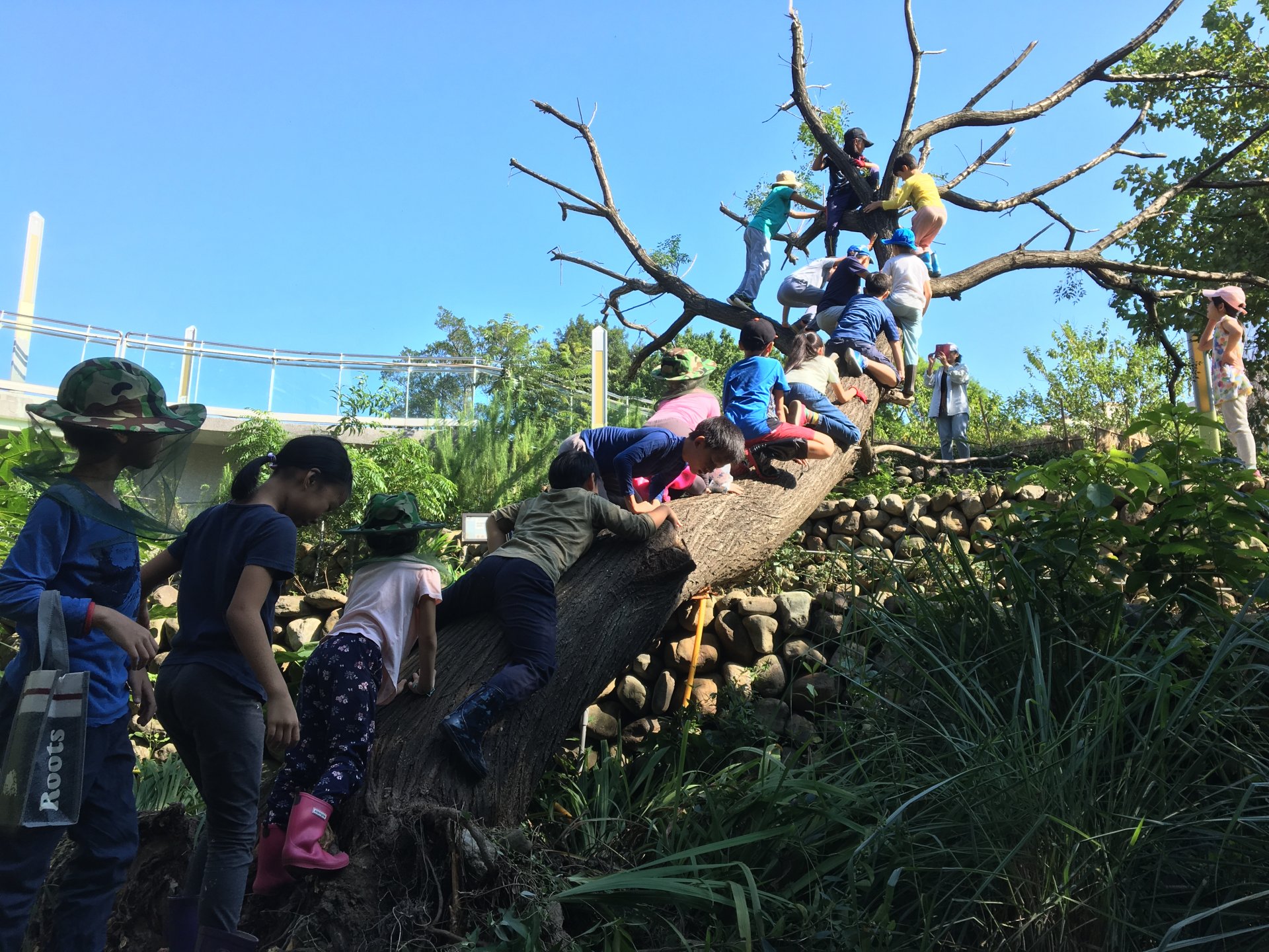 然資源除了成為生活必需品外,也能成為兒童遊戲、啟發創作的素材。在自然遊戲空間內,農場不設定遊具,希望讓親子一起恣意的操作共學,尋找遊戲的方式,並學習自己承擔安全的責任。