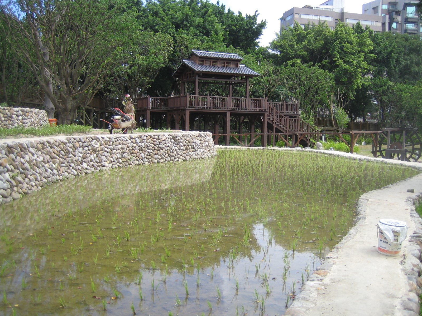 梯田第一階,原本混凝土建造的田埂寬度只有70公分,在茶山水田上舉辦體驗活動時,常可看見嬰兒車、行動不便者都相當為難,不容易與親人一起參與這裡的活動。為此,農場號召了12個社群與上百位市民,向耆老學習傳統的砌石工法,再搬運一顆顆卵石、一袋袋黏土,由眾人的手一一疊砌、夯實,才將田埂路拓寬到120公分,並且延長成可環狀通行的步道,現在大家都更容易親近這裡。而砌石採用透水的工法,也讓生物容易躲藏,生態系也更加豐富。