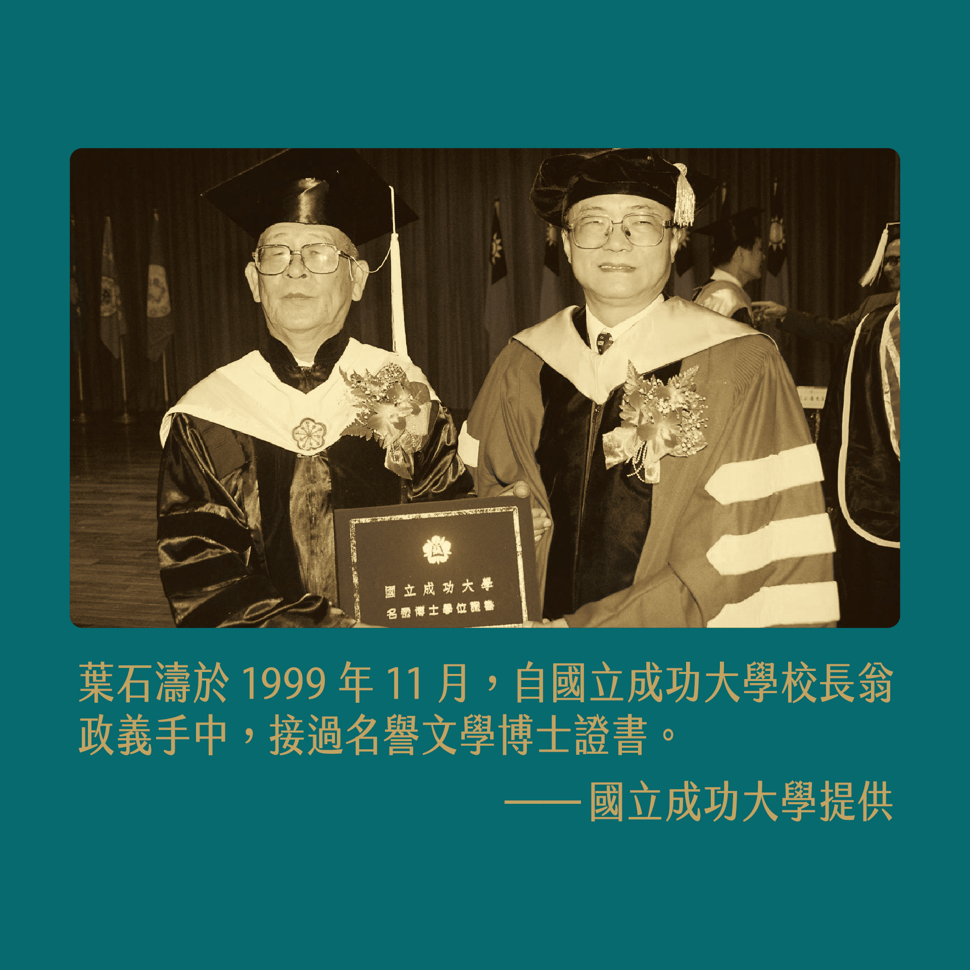November 1999: Honorary Doctorate in Literature (National Cheng Kung University)