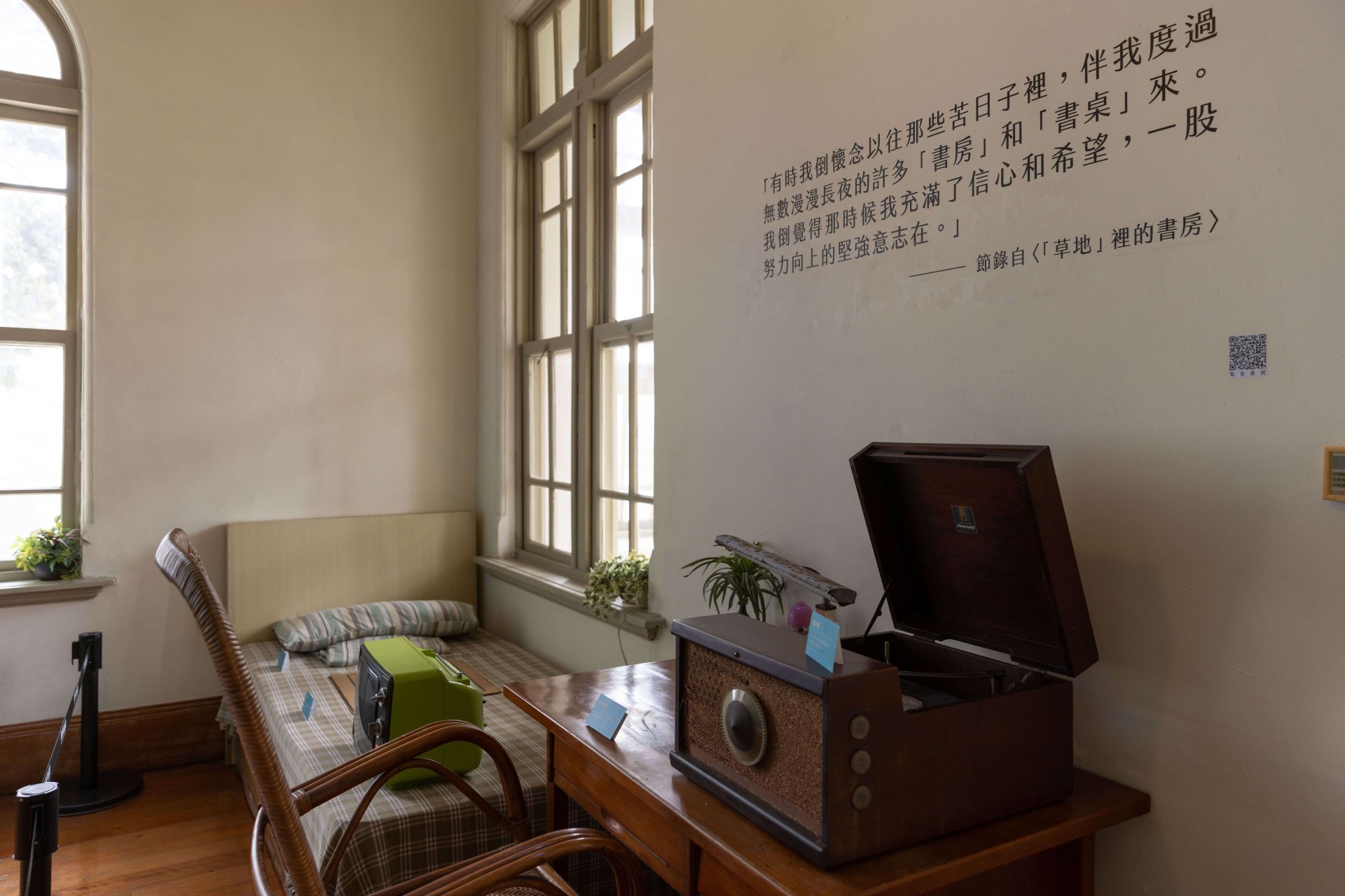 葉氏の書斎を復元したもので、レコードプレーヤー、籐の椅子、シングルベッドとテレビ、膝の上に置いて執筆に使った碁盤、葉氏の蔵書などが展示されています。