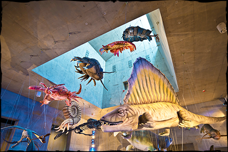 以中生代及新生代的背景,探討兩生代中,最具代表性的生物:爬行類及哺乳類動物。 藉由爬行類及哺乳類動物的骨骼及兩生代間的時空背景、相關植物做對比介紹。