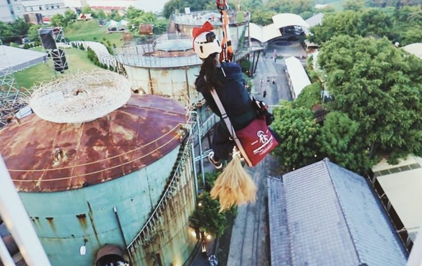 你曾經嚮往宮崎駿電影「魔女宅急便」裡的魔女琪琪,或是像哈利波特電影一樣,騎著掃帚在天空翱翔嗎?十鼓仁糖文化園區的飛天宅急便設施可以完成你的夢想!2019年暑假開設的設施,讓你享受腳下懸空在20公尺高空飛行約10秒、橫跨整個園區的奇幻體驗。