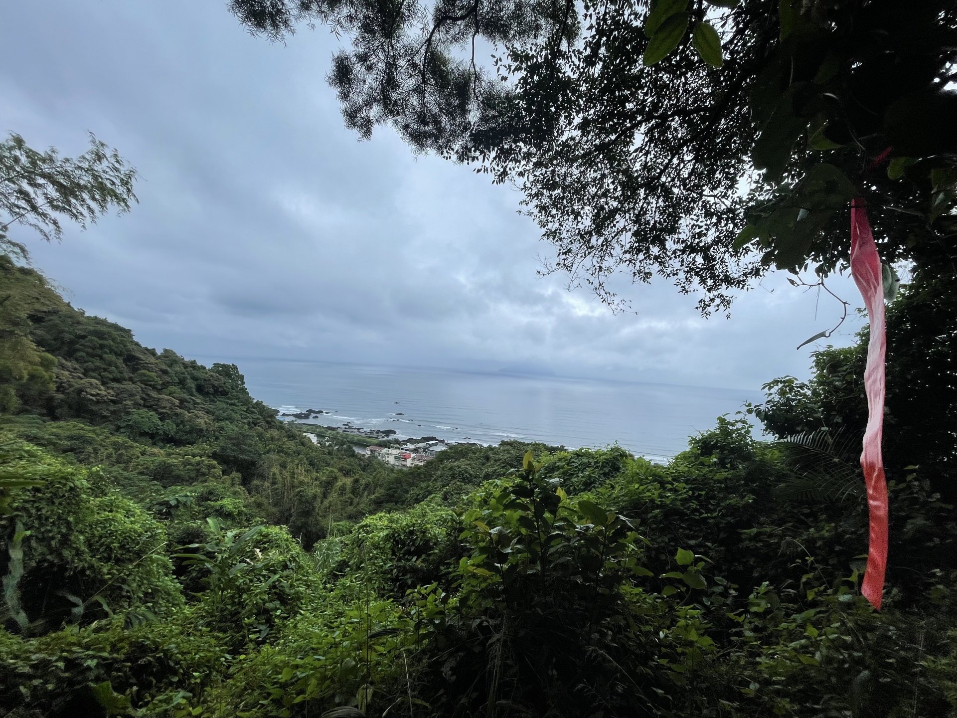 由登山口進入並開始爬坡登山後,您仍可在二側看到居民種植之菜園,再離開往上走過居民裁種區,約10分鐘,0.5k處,在此山凹處回頭望,天氣晴朗時亦可遠望龜山島及太平洋
