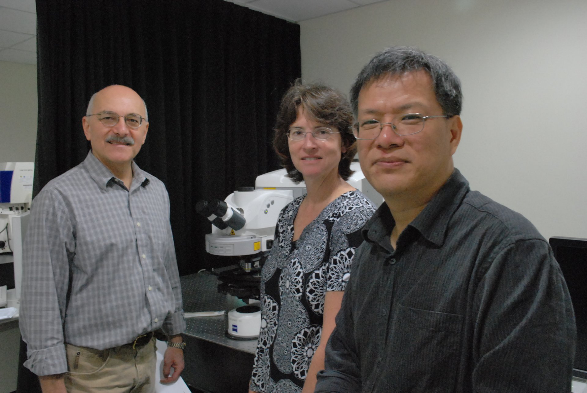 → 螢光標定:為了研究細胞內不同分子,開發具螢光訊號的化學染劑或螢光蛋白,能使觀察者在看深層的細胞時不會被淺層的細胞所干擾。江安世教授在中研院物理所研究員胡宇光的幫助下修飾自發性閃爍螢光分子的結構,使觀察的組織深度提升了數十倍。