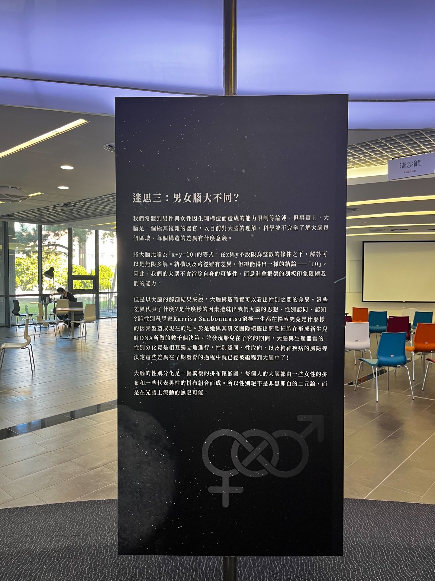 您是否聽過由於男性與女性的腦結構不同,而產生的二元對立行為模式的論述?例如:男性的數理能力較好,所以適合當工程師、以解剖結果而言女性的左右腦連接的比較好,所以女性通常較能「全面性思考」,而男性死板固執。但事實上,大腦是一個極其複雜的器官,以目前對大腦的理解,科學並不完整了解大腦每個區域、每個構造的差異有什麼意義。