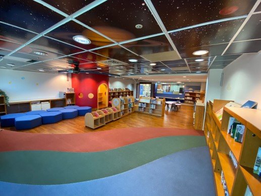 裡面有許多繪本及舒適的桌椅可以讓學生在此閱讀書籍。